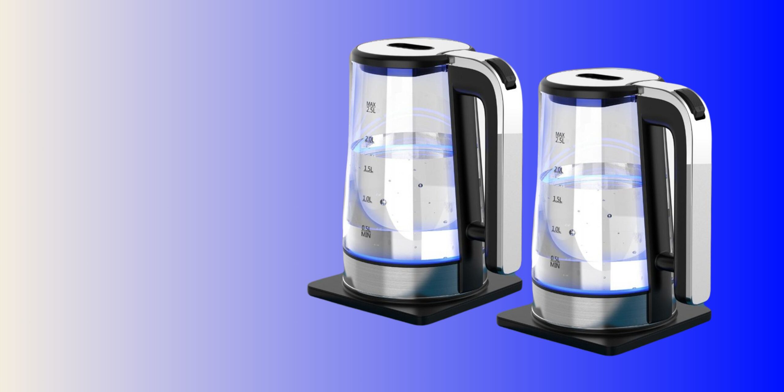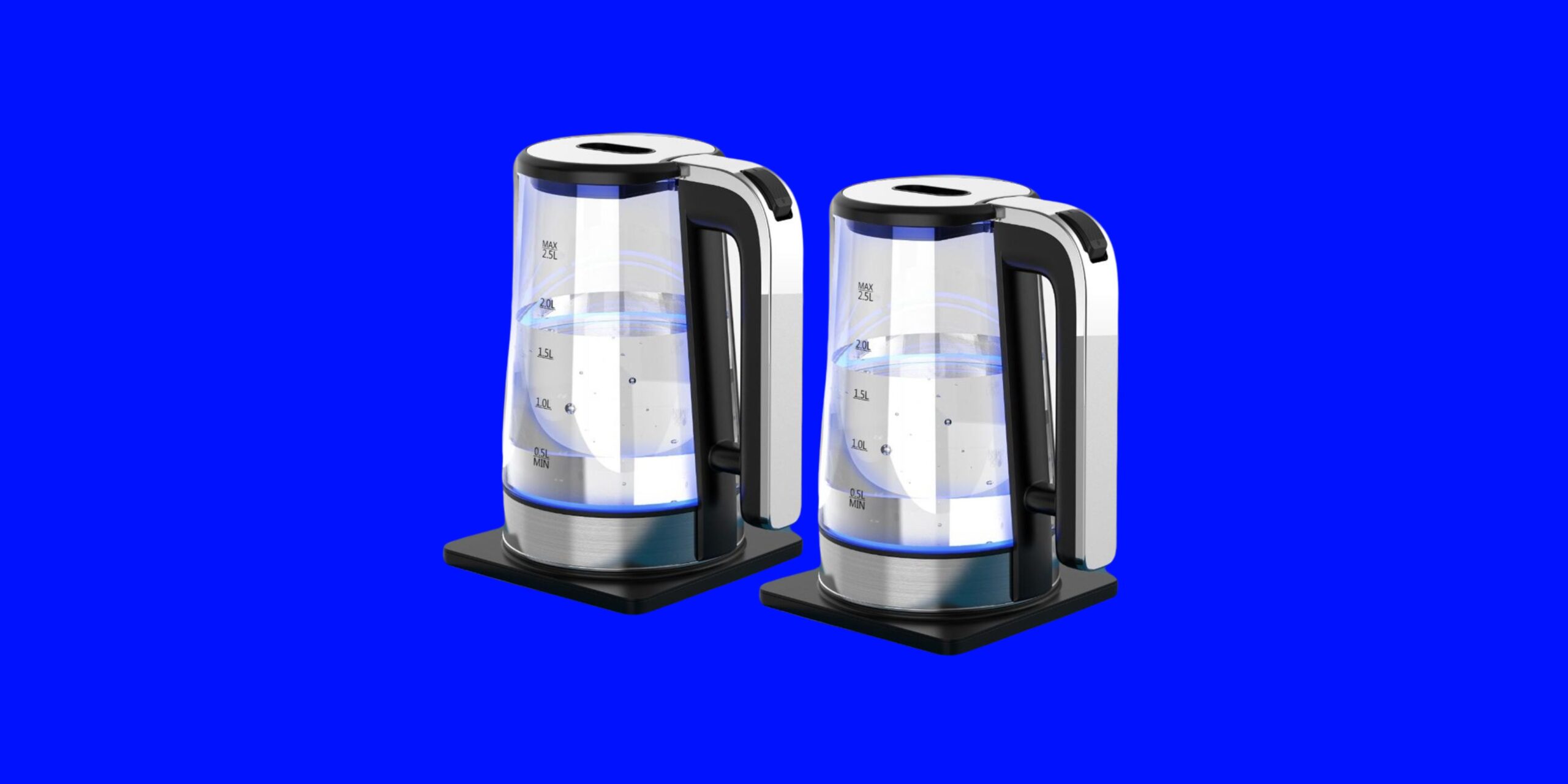 2.5 Litre glass kettle with brushed stainless steel accents